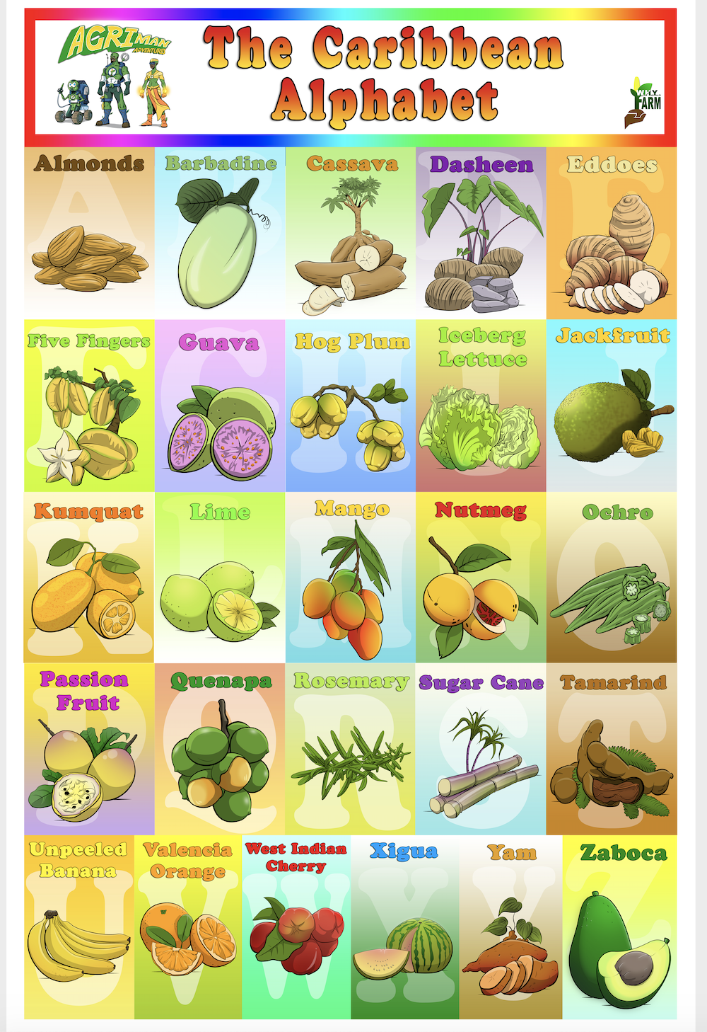 A Fruit/Vegetable ALPHABET letters collection for kids. Agri-Educational poster for school and home.